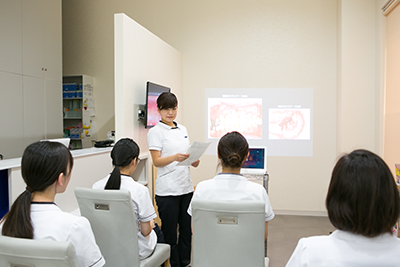 この勉強会は、医院全体の情報共有だけでなく、平等な診療を患者さんに受けていただくことを常に考え、定期的に開催しております。